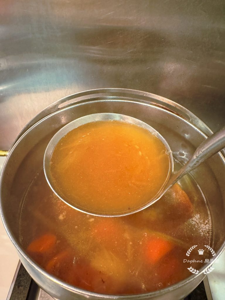 小貼士:要牛骨湯煮得清澈,必須以中小火慢慢熬製,在熬製的途中如果見到湯上面浮住白色嘅泡泡,要盡量除掉;如果見到湯上面有很多油也要取掉;如時間許可,可以把煮好的湯放在雪櫃中,過一晚後把面層的油輕易除掉。