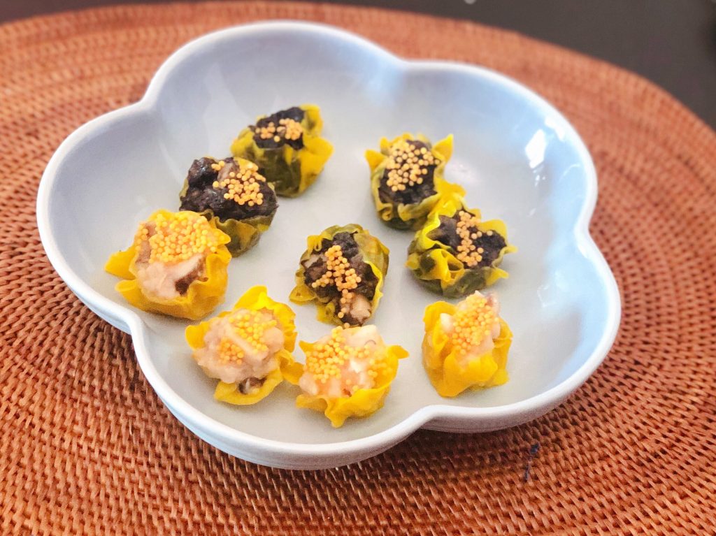 - 加入蟹籽在燒賣面,蒸15分鐘即成!