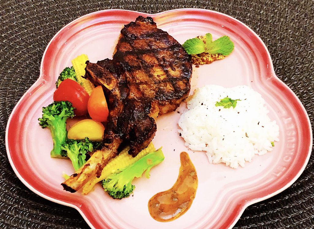 材料及醃料:伊比利豬豬鞍2件(約3.5cm厚)、法式蜜糖芥未1湯匙、鹽麴2茶匙