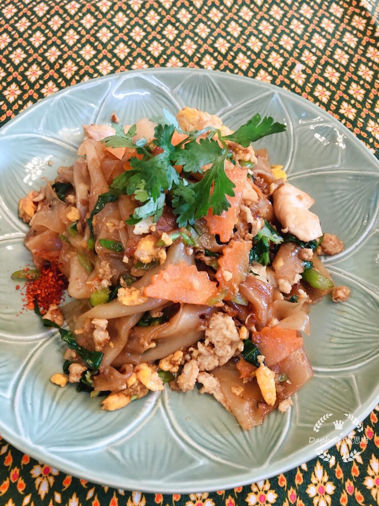 泰式雞肉炒河粉-十分受歡迎的泰菜菜色,尤其受小朋友喜愛。河粉軟軟滑滑,加入了本地芥蘭及雞肉,有肉有菜,簡簡單單又一餐。