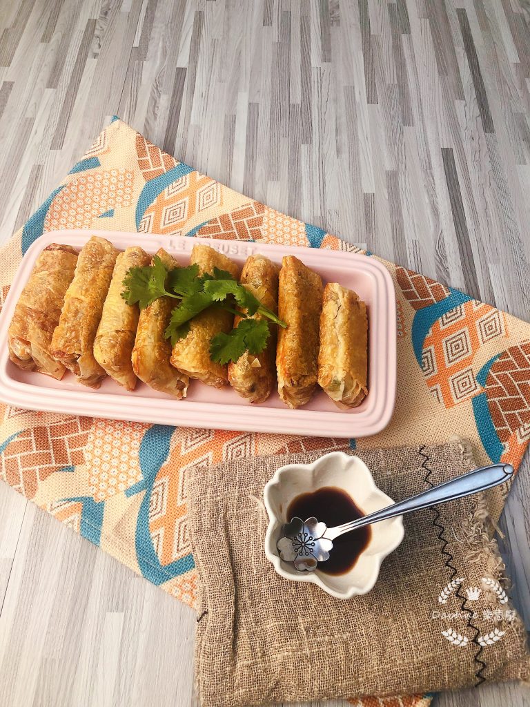- 在煎鍋中加入油,以中慢火煎香腐皮卷即成